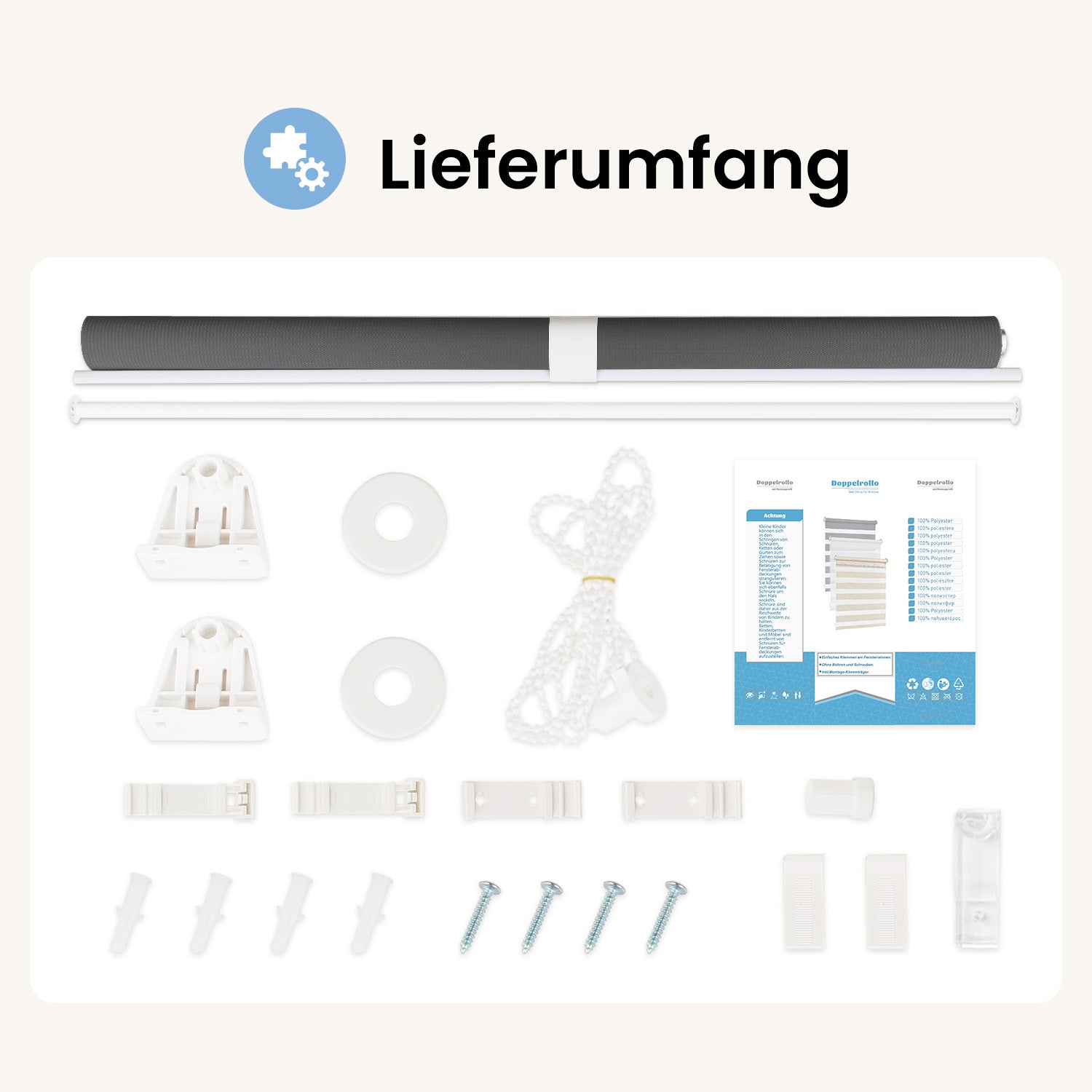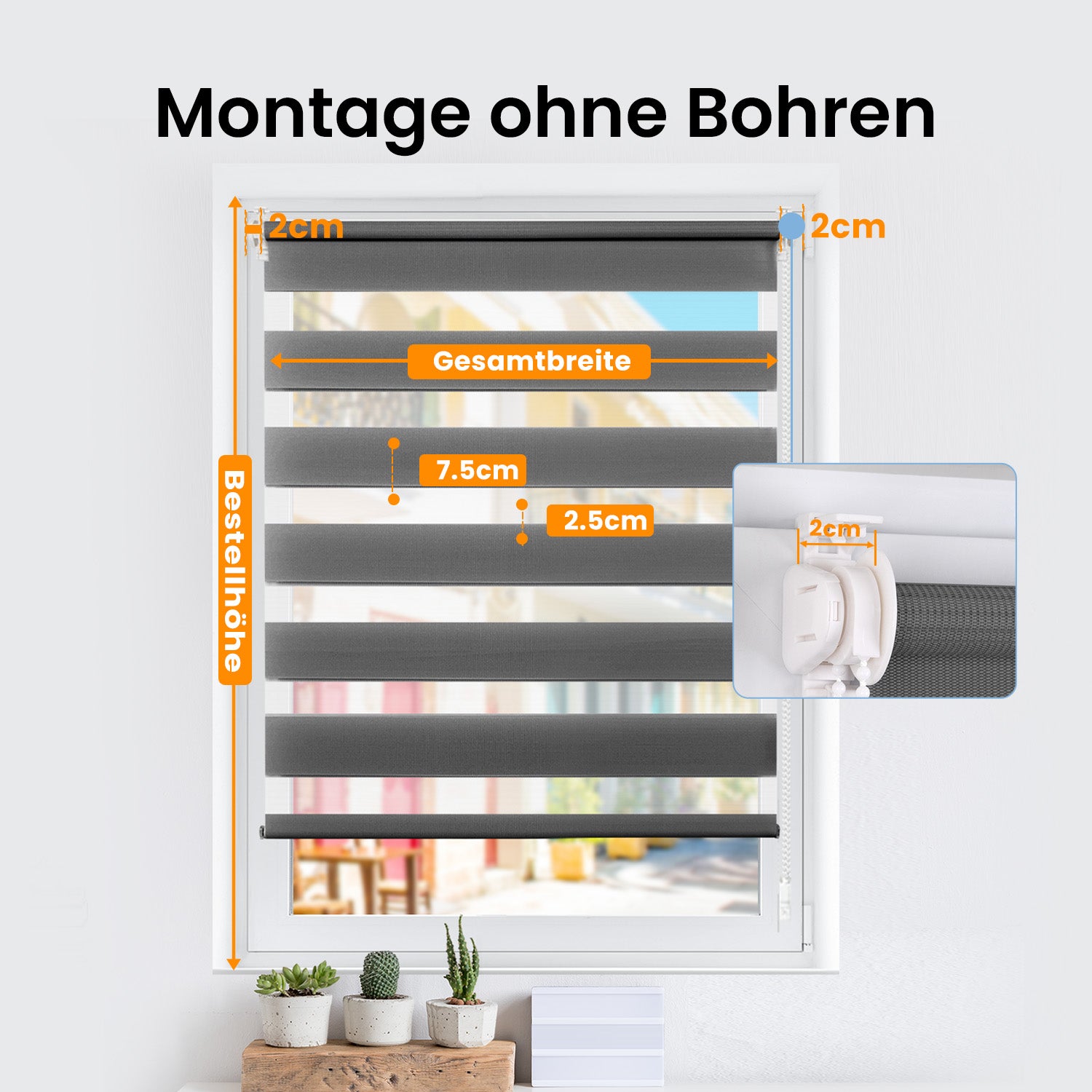- Leicht anzubringende & pflegeleichte Doppelrollos:Kinderleichte Montage ohne Bohren. Sie können entweder mit Hilfe des mitgelieferten Klemmfix-Systems am Fensterrahmen verwenden, oder mit Hilfe des beigefügten Bohrenmaterials direkt in die Fensterlaibung oder an die Wand bzw. Decke. befestigen.Für die Pflege empfehlen wir das Absaugen mit einem Möbelpinsel oder einer Fugendüse oder das Abwischen mit einem feuchten Tuch.