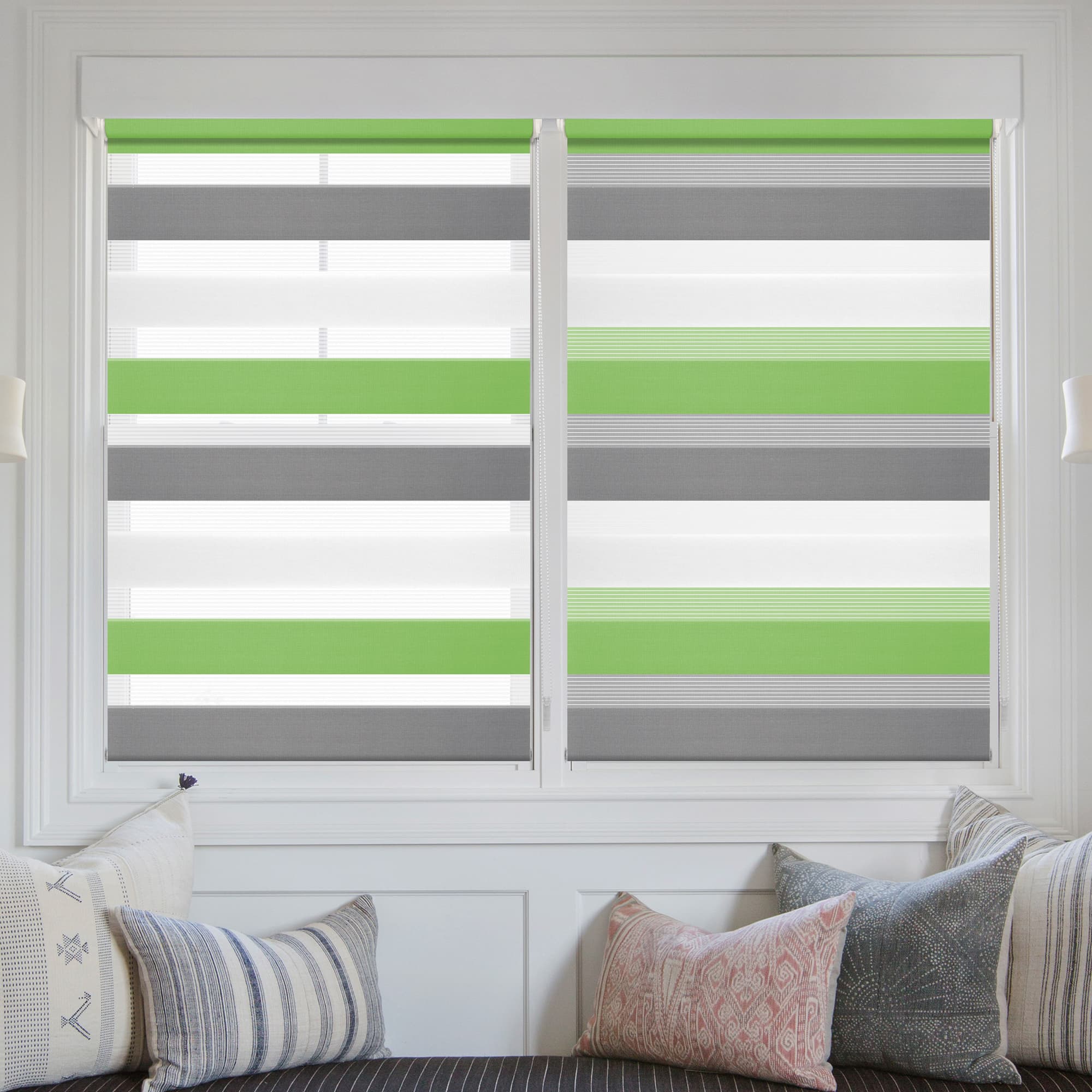 Doppelrollo Duo Rollo Klemmfix ohne Bohren Grün Grau Weiß