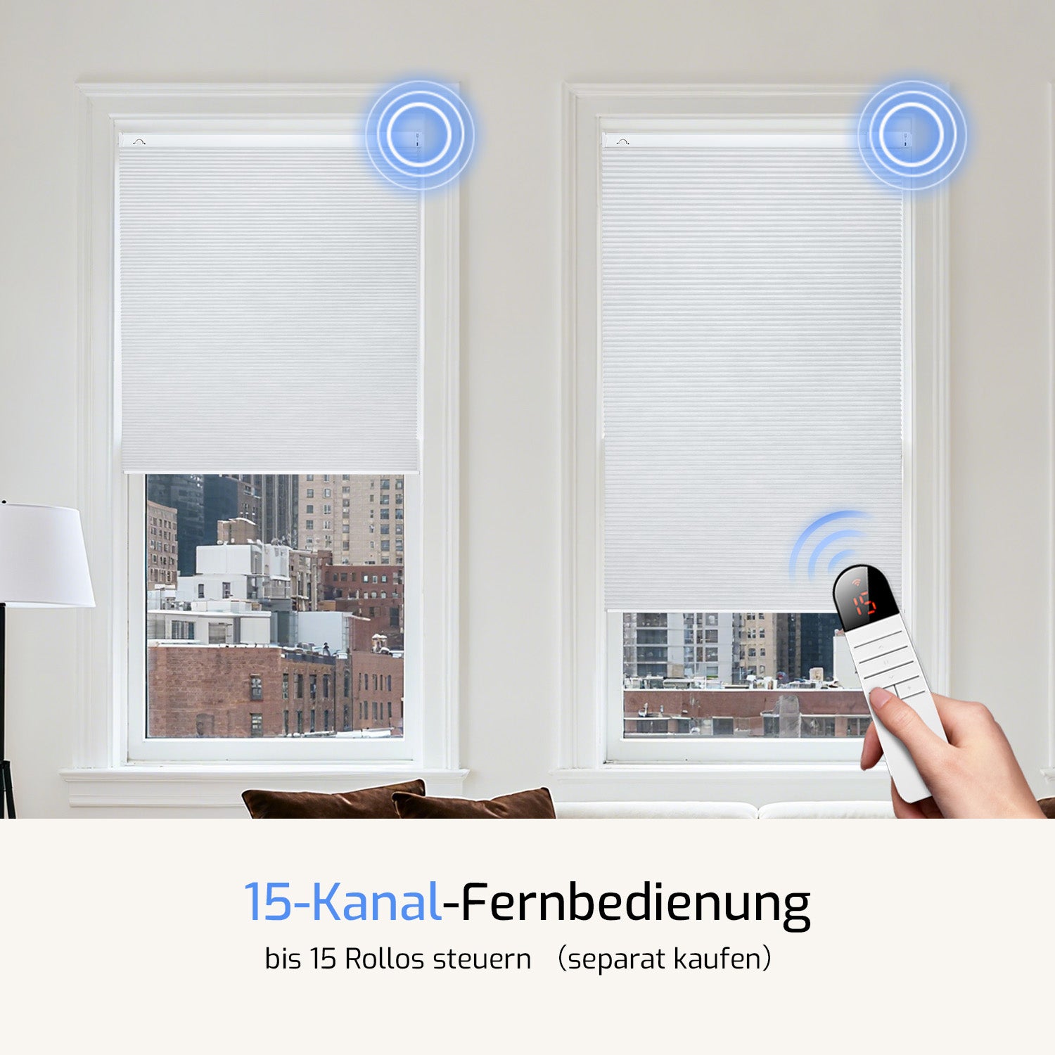 - 15-Kanal-Fernbedienung (optional): Upgrade auf eine 15-Kanal-Fernbedienung zur individuellen Steuerung von bis zu 15 Jalousien in Ihrem Zuhause. Perfekt für die Steuerung von Jalousien in mehreren Räumen oder für einen synchronisierten Betrieb.