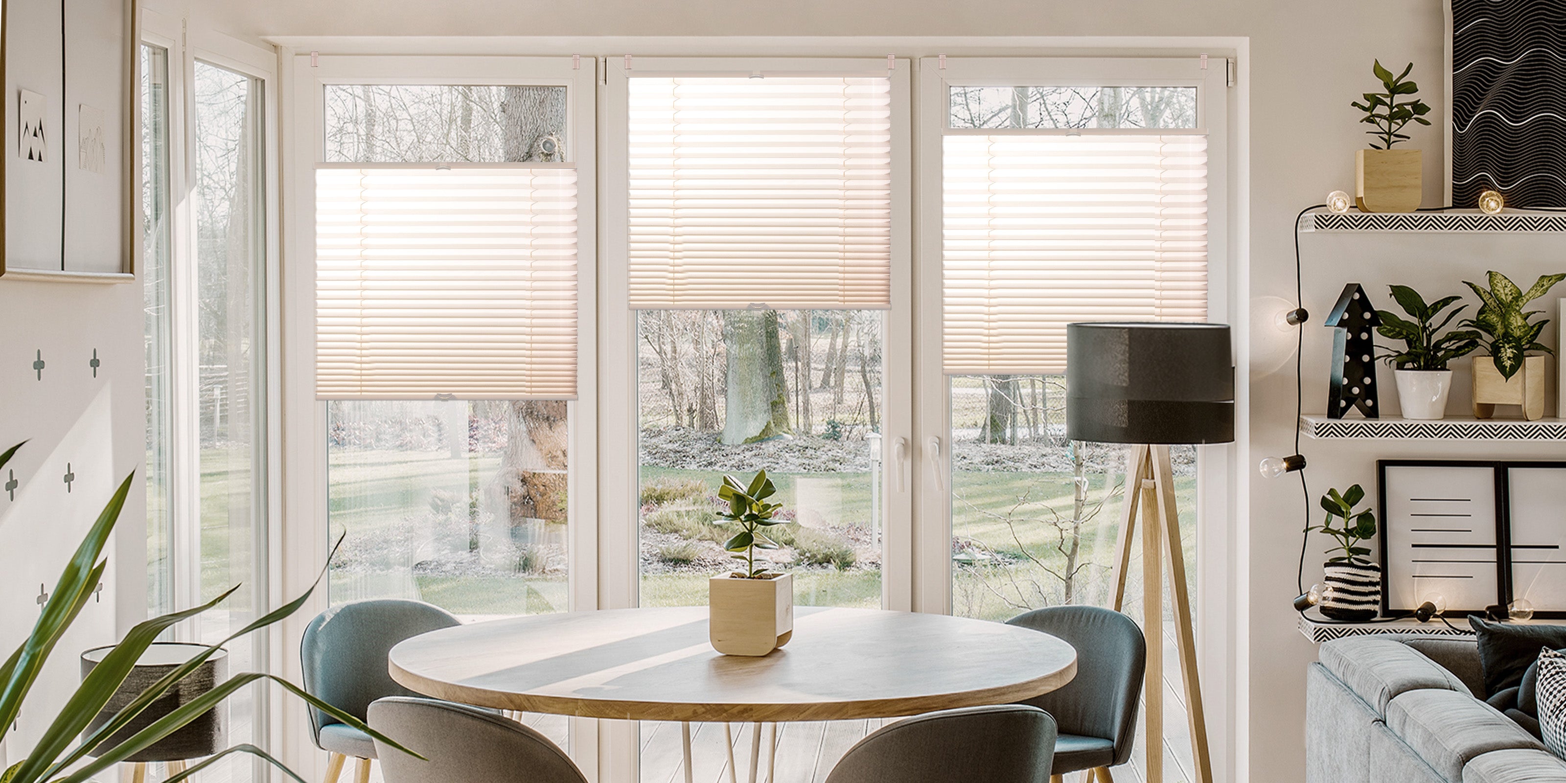 Die Plissee-Rollos für Fenster ohne Bohren eignen sich für alle Arten von Räumen: Büro, Schlaf-, Wohn-, Bade- und Kinderzimmer, sowie für Balkon- und Terrassentüren. Dank der bohrfreien Montage bringen Sie ohne Probleme eine moderne, ansprechende Optik – kombiniert mit einfacher und zuverlässiger Technik – an Ihre Fenster. Ein sehr stilvolles und perfektes Beispiel für solch Rollos für Fenster ohne Bohren.