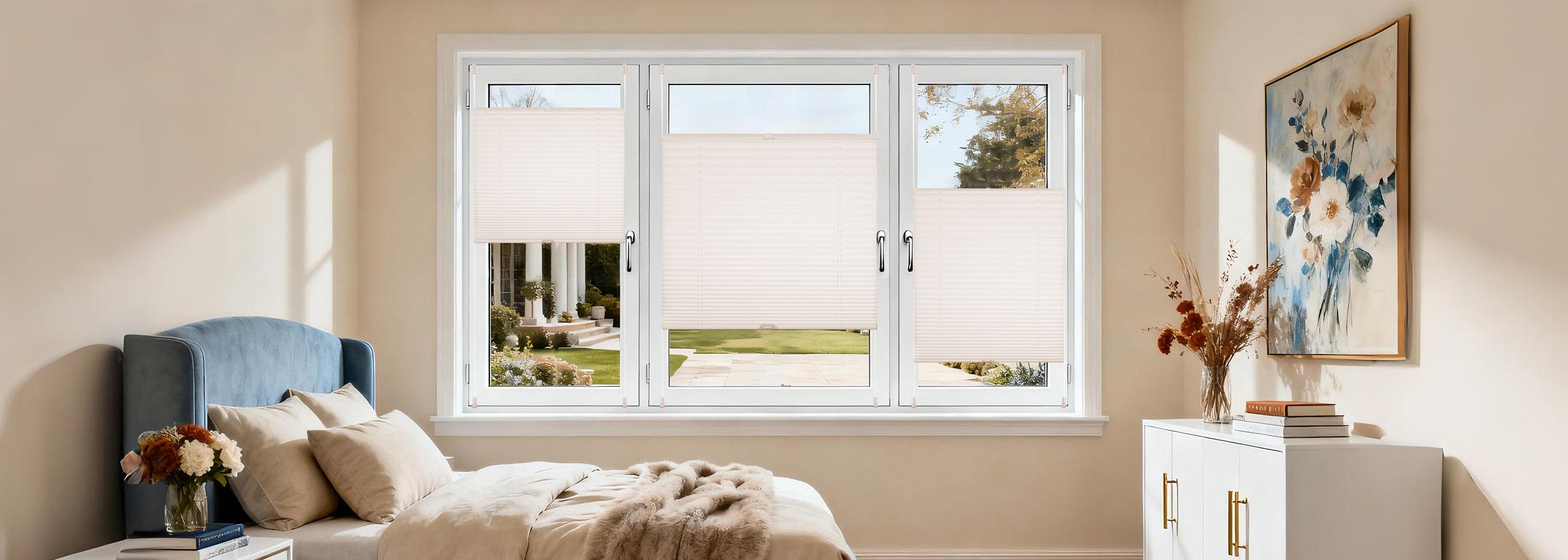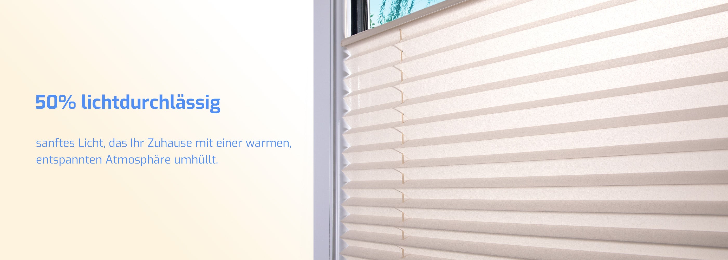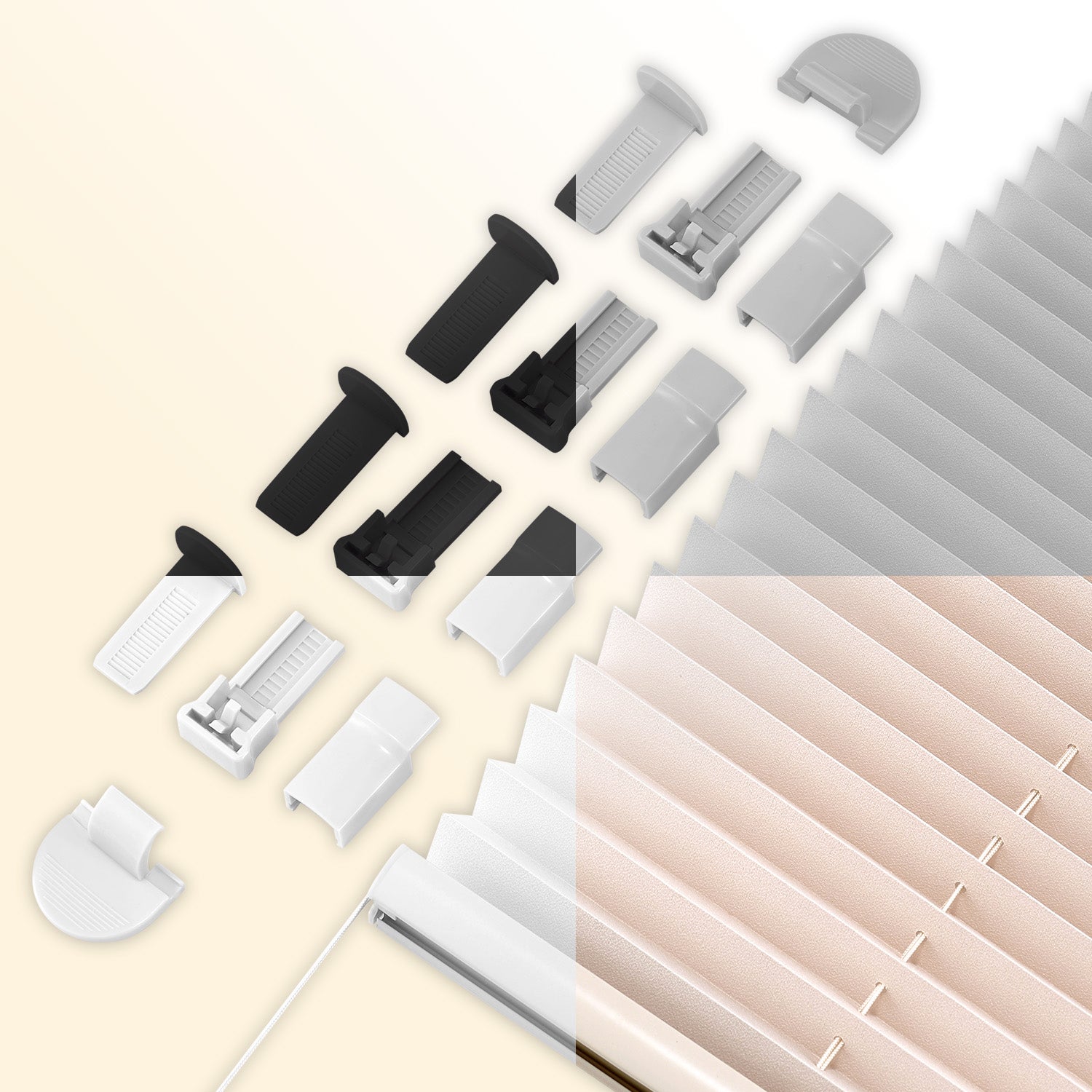 - 【Vereinheitlichung der Farben】Das Plissee mit Alustangen, Zubehör und Stoff in gleicher Farbe – die einheitliche Tönung lässt die einzelnen Teile weniger hervortreten, so dass die Jalousie nahtlos in die Raumkulisse eingebettet wird, ohne jegliche Trennung. Sie verabschiedet sich von Unordnung, strahlt Eleganz aus und verbirgt gleichzeitig eine feine Handwerkskunst; sie atmet Hochwertigkeit, so dass man auf den ersten Blick ihren qualitativen Anspruch spürt.